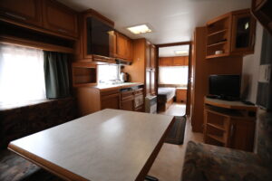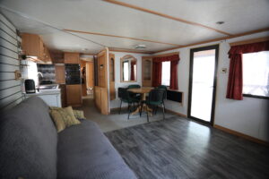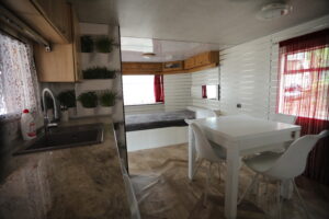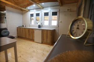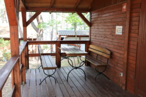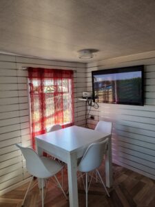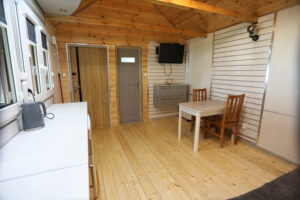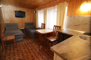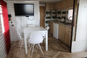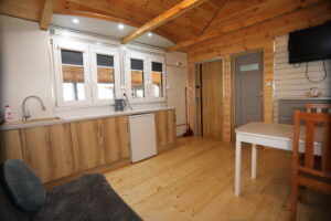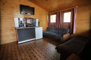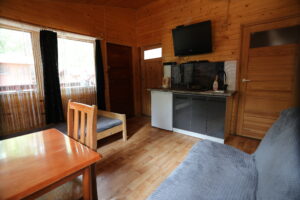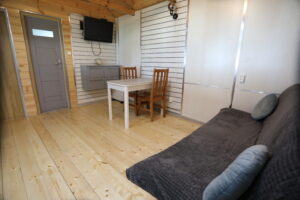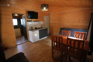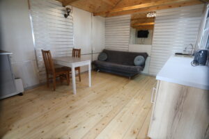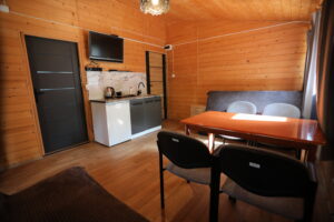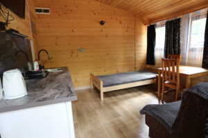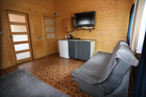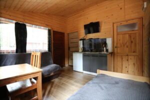 - Aneks kuchenny, wyposażenie: czajnik elektryczny, lodówka, zastawa stołowa, sztućce, kuchenka gazowa na kartusze