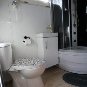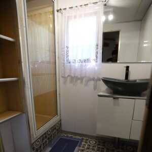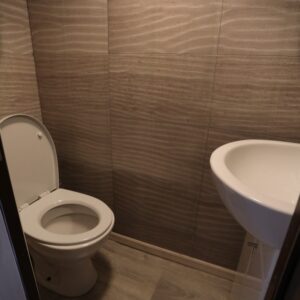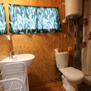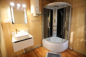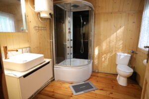 - Łazienka z kabiną prysznicową, umywalką i WC